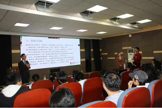 在交流环节,公司张艳梅教授和众多师生一起参与互动。张艳梅首先感谢张新生教授的精彩讲学和对公司国际中文教育研究的学术指导,尤其是对国家社科基金中华学术外译项目“《古文字趣谈》英译”(23WKGB010)团队的支持和帮助。现场师生围绕汉字教学创新、文化翻译、区域国别研究等话题与张教授进行了深入探讨,师生受益良多。