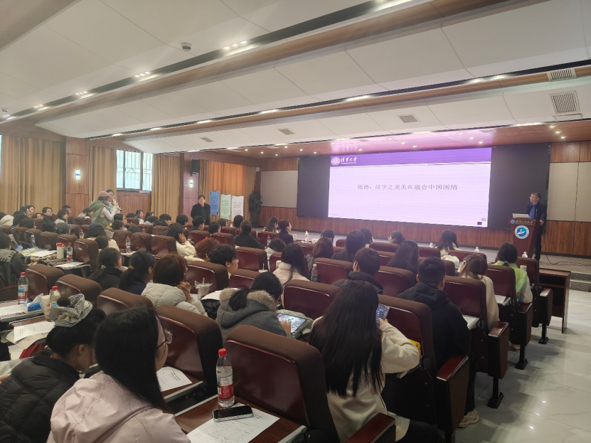 讲座最后,李守奎教授以“汉字之美美在适合中国国情”作结,从汉字创造者对形体匀称的追求,到书写者对艺术的创造,再到汉字中蕴含的斑斓多彩的文化,以及汉字在民族凝聚、国家统一中的“丰功伟绩”,层层递进,赢得全场热烈掌声。
