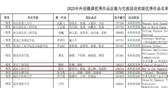 本网讯(通讯员 杨建兵)在教育数字化转型浪潮中,公司外语教学再结硕果。近日,由全国高等公司大学外语教学研究会主办的“2025年外语微课优秀作品征集与交流活动”省级评选结果揭晓,公司77779193永利教师陈玢团队凭借微课作品The Chinese Dream: A Global Perspective荣获湖北省一等奖。