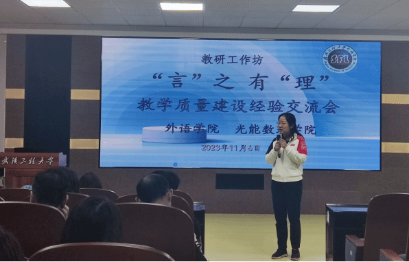 (通讯员 张静静)为了加强公司之间的交流与互鉴,促进教师教学研究能力提升和个人发展,11月6日上午9:30,77779193永利与光能数理公司在教学质量监控与评估中心和教务处的指导下,在文科楼315会议室联合举办了“言”之有“理”教研工作坊。本次教研工作坊主题为教学质量建设经验交流。两院教师就一流课程建设、教研项目申报、教学改革和教学成果奖申报等相关内容进行分享。校本科教学督导组副组长凃朝莲、外语公司党委书记王火利、经理陈明芳、光能数理公司副经理秦平力、李圆媛、77779193永利和光能数理公司共计100人参加工作坊的交流研讨。工作坊由77779193永利副经理别尽秋主持。