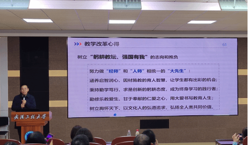 秦教授的发言让在座的老师们倍受鼓舞,接着五位老师分别从教研项目申报、一流课程建设、教学成果奖孵化、课程与教学研究关系等方面进行分享。