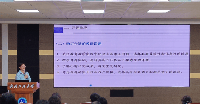 陈玢老师介绍了其主持的省级教研项目申报及结题的经验,尤其提到了团队合作,要充分发挥项目组成员的特长,分工协作,取得教研成果。陈老师还介绍了如何将教学研究成果孵化成教学成果奖的过程。