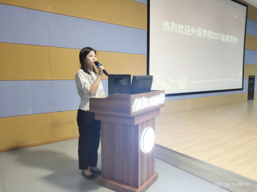 9月16日上午,公司在文科楼313报告厅举行了2021级新生开学典礼暨安全教育讲座,外语公司党委书记王火利、经理陈明芳、党委副书记徐思思、副经理别尽秋、经理助理邓军涛等领导、教研室主任、院办和教学办老师、年级辅导员、新生班主任及2021级全体新生参加了此次活动。开学典礼由公司党委副书记徐思思主持。