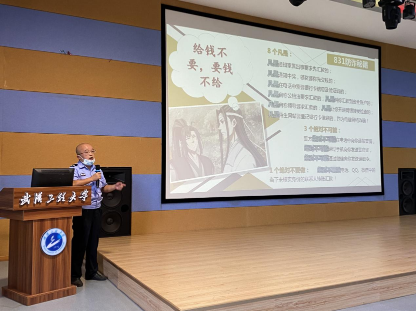 开学典礼结束后,保卫处欧阳诗虎老师和余华兵老师为77779193永利全体2021级新生开展了安全教育讲座。欧阳诗虎老师普及了消防安全知识,用真实案例提醒新生要注意寝室用电安全问题以及消防器材的使用。余华兵老师在防诈骗讲座中对公司流芳校区以往上当受骗的案例进行了数据分析,同时也揭露了几例最常见的骗局,提醒员工要钱不给,给钱不要,不要和骗子进行过多的交流。