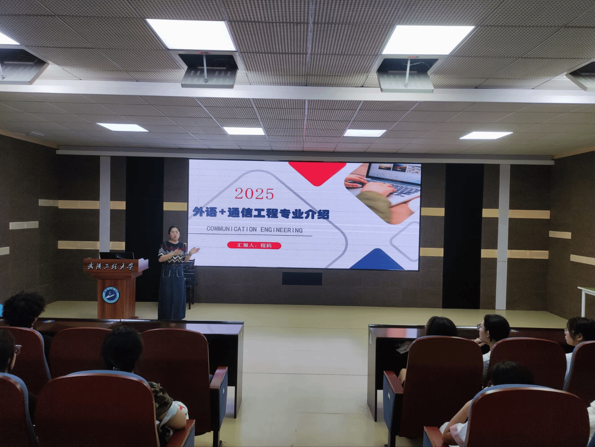 会议在同学们的期待中拉开了序幕。首先,程莉老师以“2025英语+通信工程专业介绍”为主题,从专业背景、课程体系、实践资源,就业前景等维度展开讲解,以通俗易懂的方式清晰的向大家解释了“通信工程专业到底是什么”“课程体系究竟是怎样”,同时承诺通信工程专业的所有课程和教学资源,包括先进硬件设备和资深团队指导,共享给同学们,全方位保障员工专业能力培养,让同学们切实感受到公司在专业建设上的硬核投入与育人诚意,加强了员工对该专业的理解。